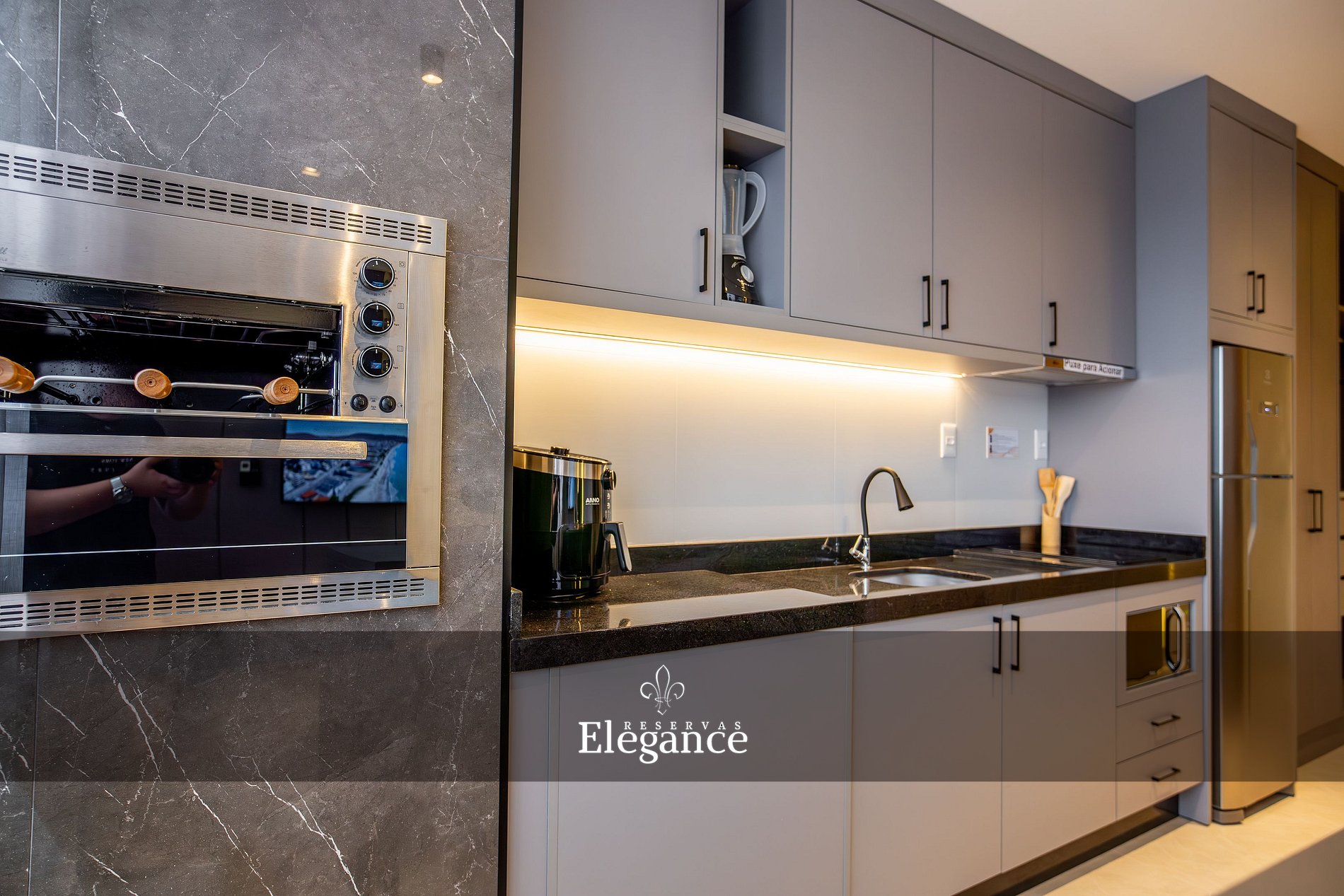 - Churrasqueira elétrica integradas a cozinha, equipadas com utensílios de churrasco;