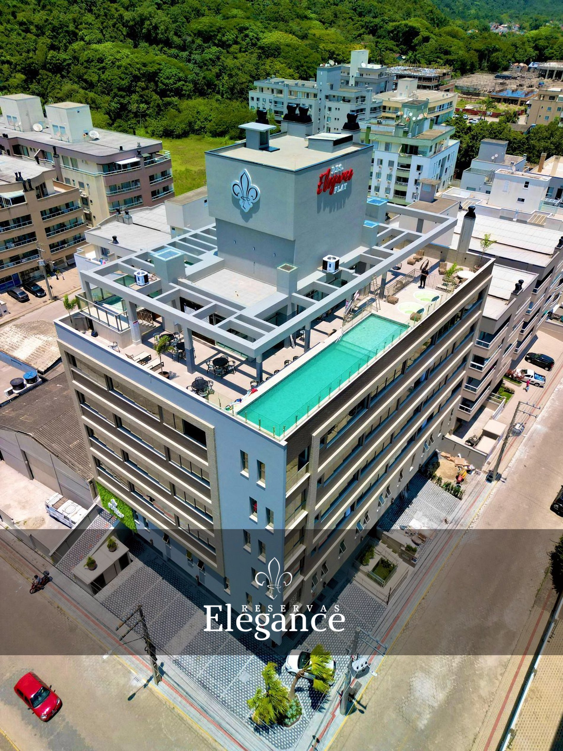 O Elegance Apartamentos alia conveniência e sustentabilidade. O prédio utiliza água da chuva e do ar-condicionado para limpeza e jardinagem e conta com um poço artesiano com filtragem industrial, contribuindo para um turismo consciente.