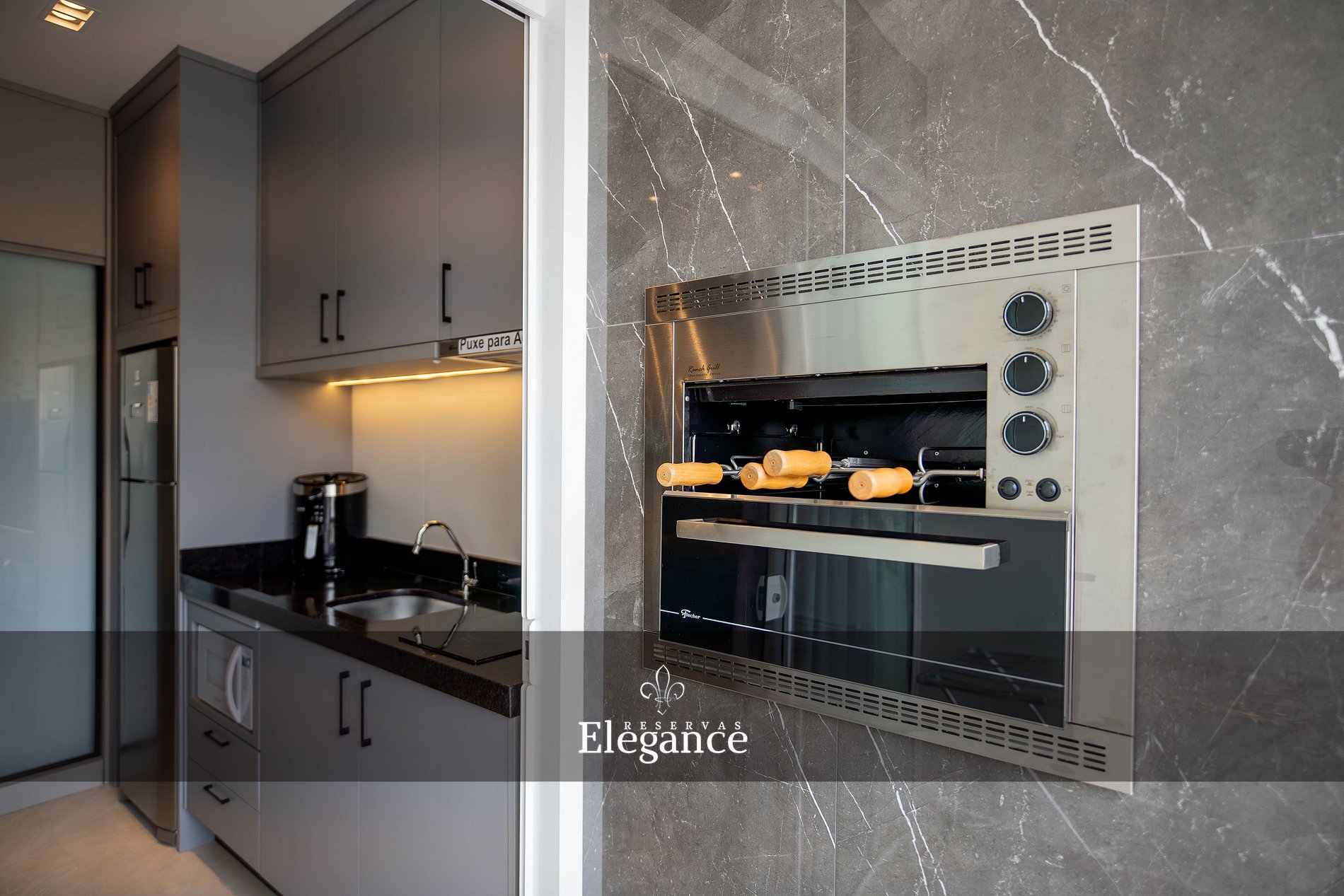 - Churrasqueira elétrica integradas a cozinha, equipadas com utensílios de churrasco;